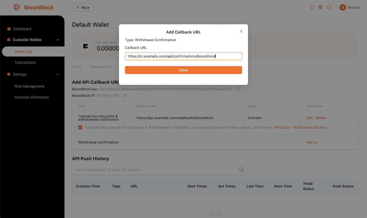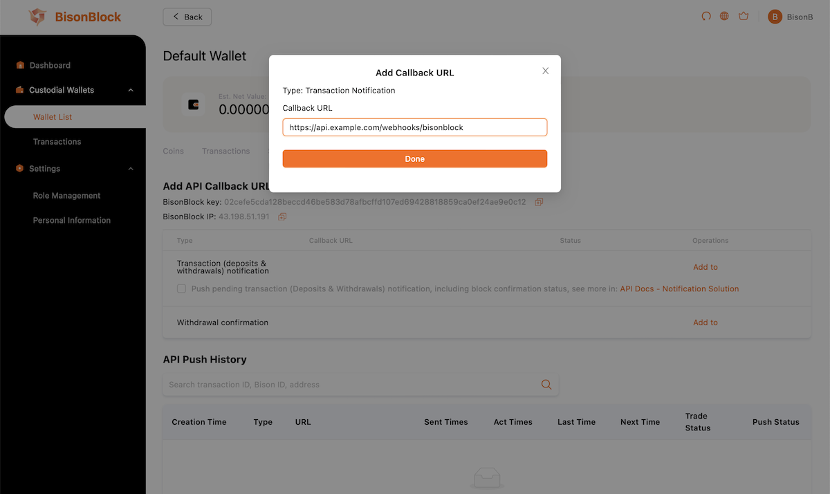 - Sandbox: https://console.sandbox.bisonblock.ai